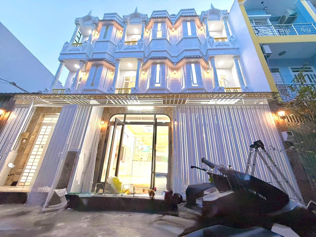 -Cấu trúc: 1 trệt 2 lầu gồm 1 phòng khách, 1 phòng bếp, 6 phòng ngủ, 8 WC, nhà thiết kế đẹp.