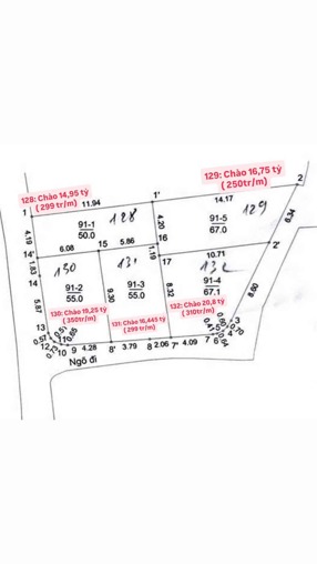 • Lô số 129: 67m² – 16.75 tỷ (~250tr/m²)
