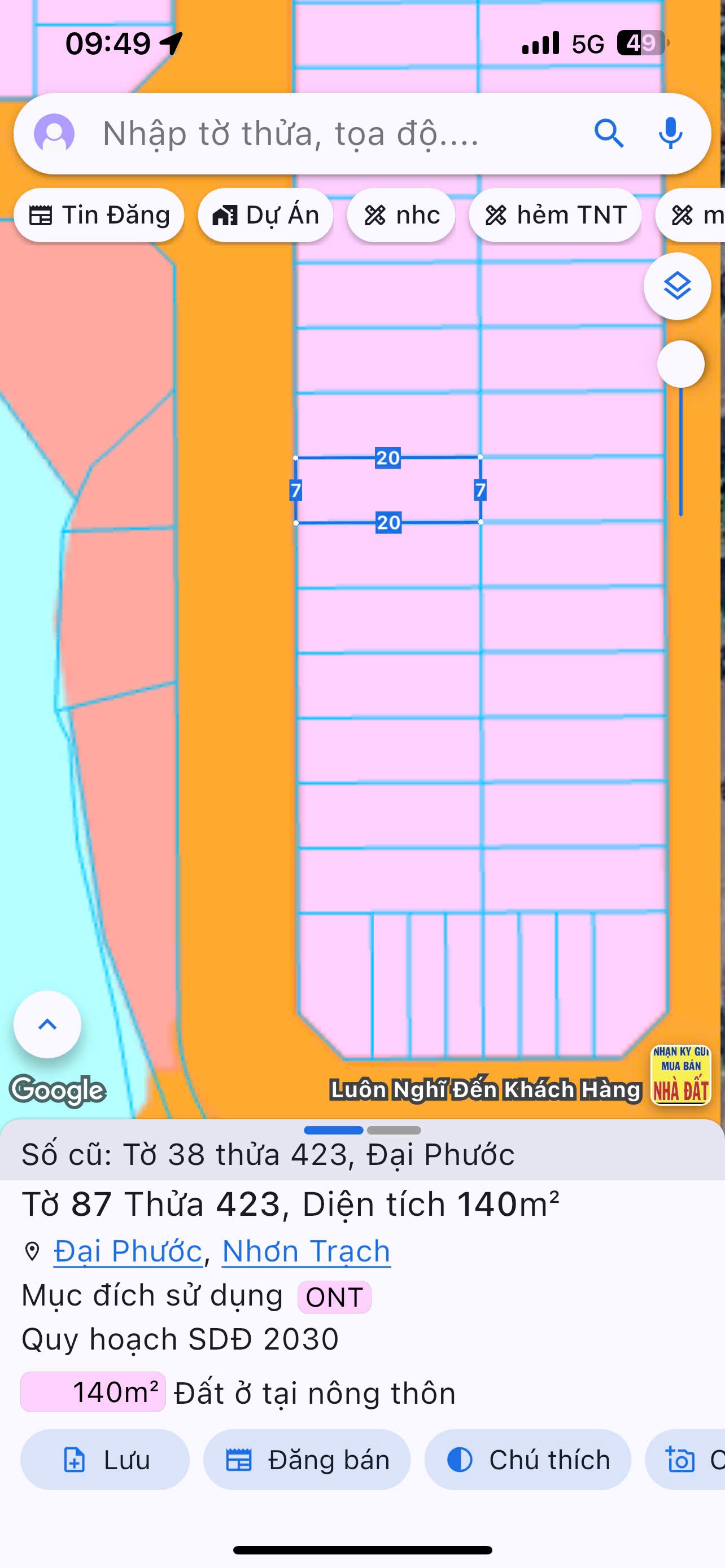 Diện tích 7x20 140m xây dựng tự do không lỗi