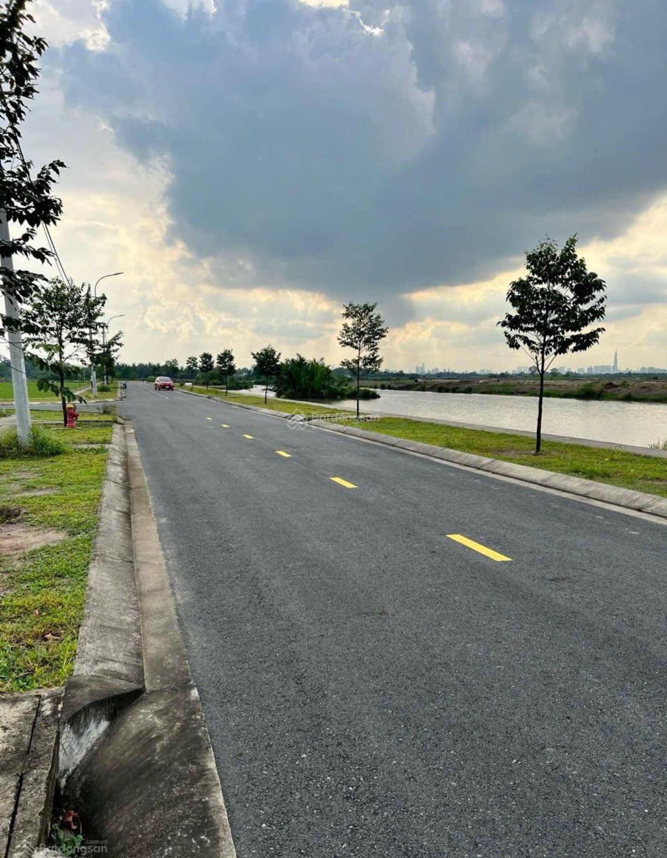 Đường vào rộng 12m, dễ dàng cho xe hơi di chuyển.